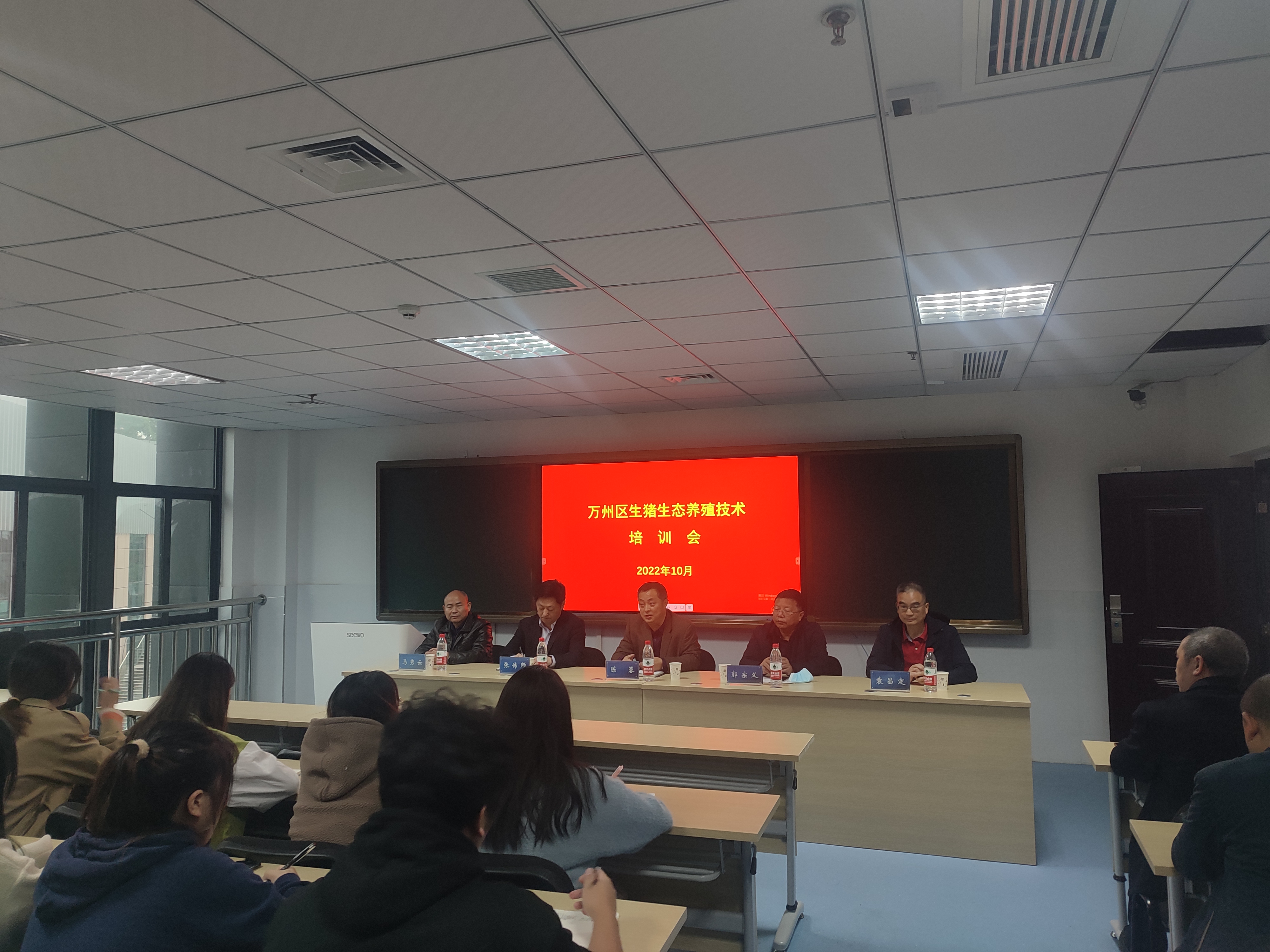 10月27日至28日,动物科技学院组织开展万州区生猪生态养殖技术培训会,培训会邀请重庆市畜牧技术推广总站研究员、重庆市畜牧业协会秘书长袁昌定,重庆市畜牧科学院养猪研究所所长郭宗义,万州区农业农村委调研员陈蓉,万州区畜牧技术推广站站长马秀云等专家现场讲授指导。会议由动物科技学院党总支书记、院长张传师主持,50余名师生参与培训。