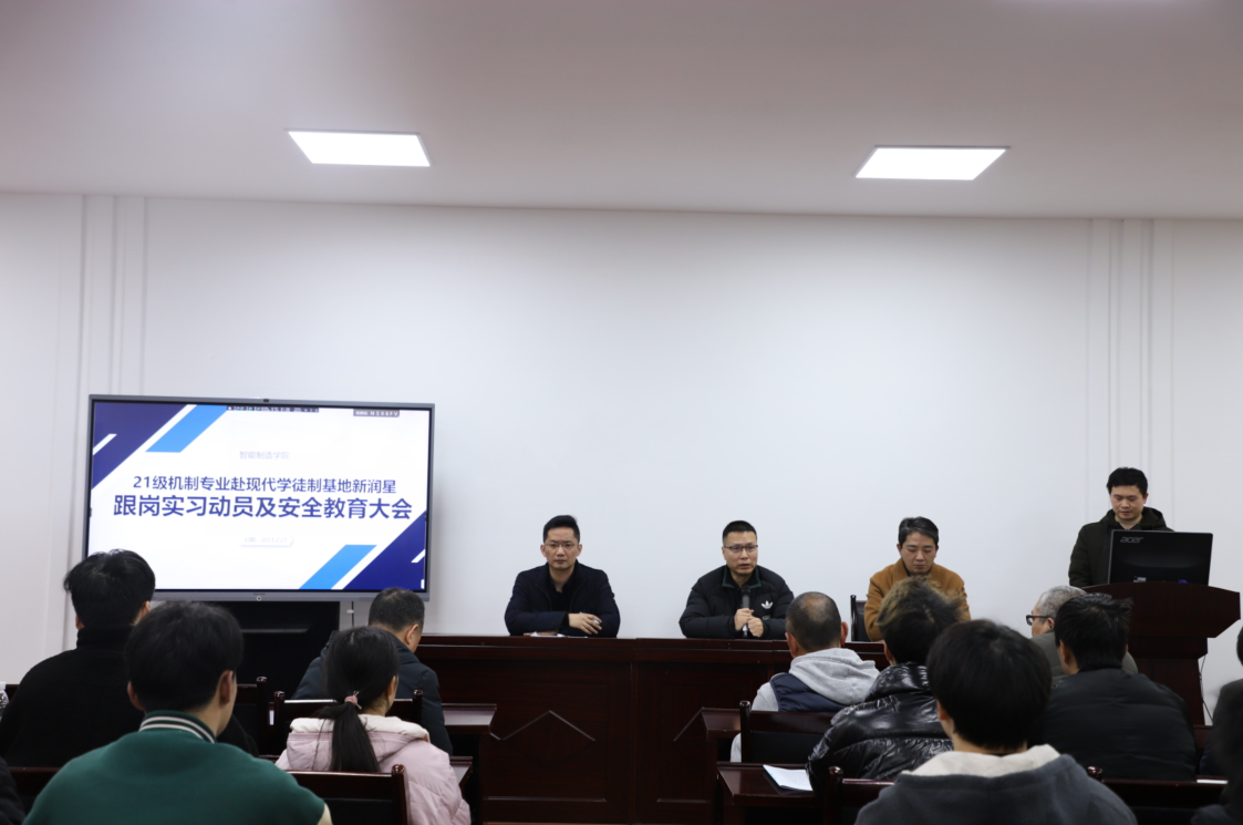 为进一步加强校企合作,推进现代学徒制试点工作。2023年2月23日,智能制造学院在奥训楼308会议室举行了21级机制专业跟岗实习动员大会。智能制造学院党总支书记、院长熊江,党总支副书记黄滔,副院长郎朗以及相关教师和学生出席了本次会议。会议由数控教研室主任成晓军主持。