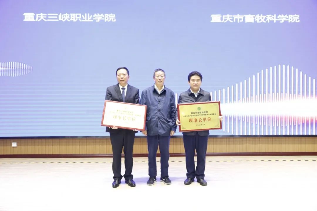 10月24日,“中国生猪产业职业教育产学研联盟”成立大会在重庆荣昌重庆市畜牧科学院学术报告厅举行。中国工程院院士印遇龙、重庆市畜牧科学院党委书记唐德荣、我院党委书记陈章、院长李炯光等40余家全国农牧高等职业院校领导,16位全国现代畜牧业龙头企业代表,以及2家科研院所等共计150余人参加此次大会。重庆市畜牧科学院副院长王启贵主持大会。我校党委书记陈章、重庆市畜牧科学院党委书记唐德荣共同当选为首届理事会理事长。
