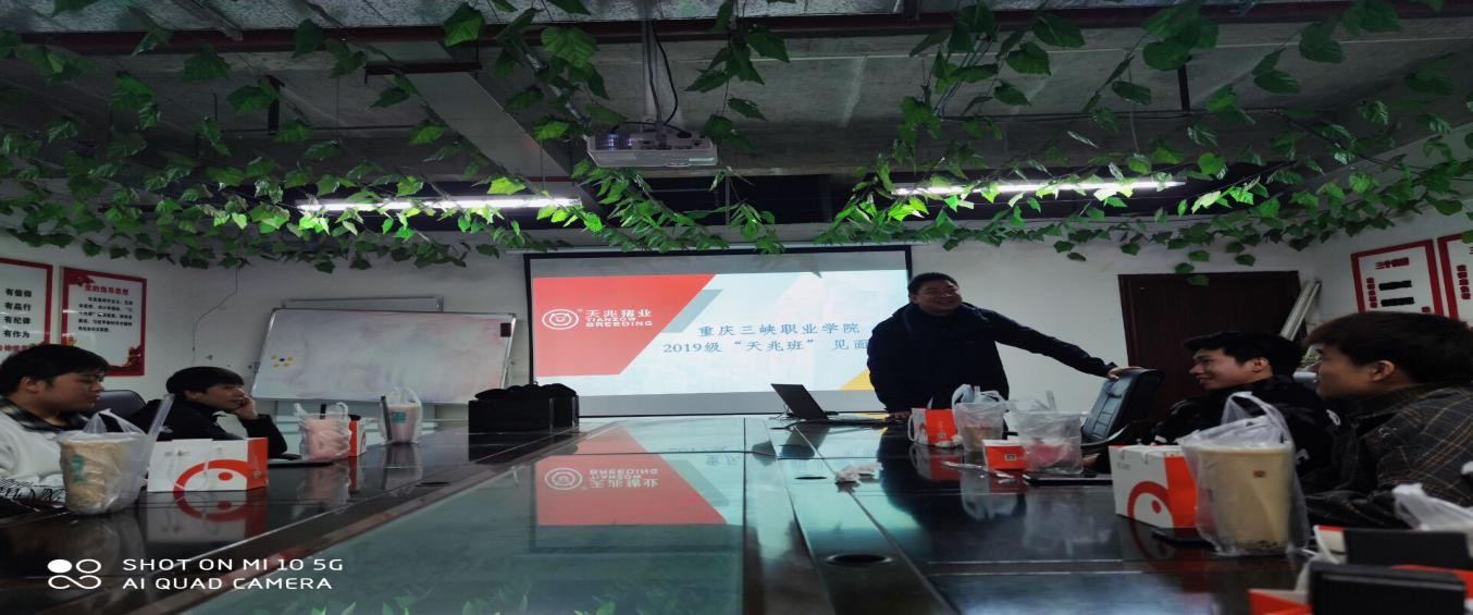 2020年12月11日下午,澳门金年会app下载官网畜牧兽医专业2019级学徒制“天兆班”见面会在动科楼120召开,天兆猪业有限公司人事部夏经理、学徒制天兆班企业班主任刘平老师、动物科技学院母治平老师、辅导员唐弋钦老师及2019级“天兆班”全体同学参加会议。