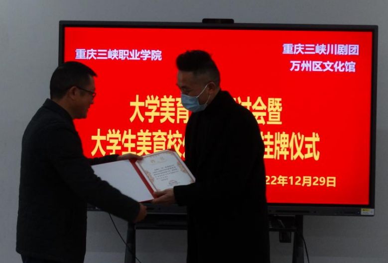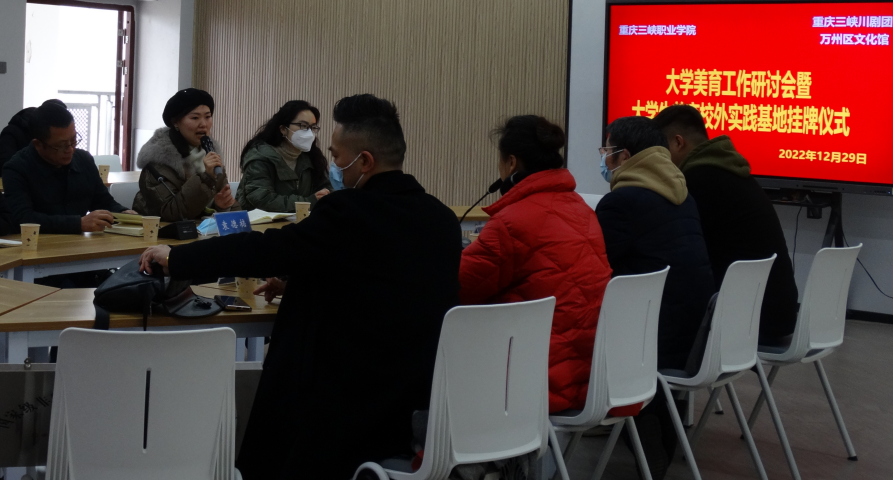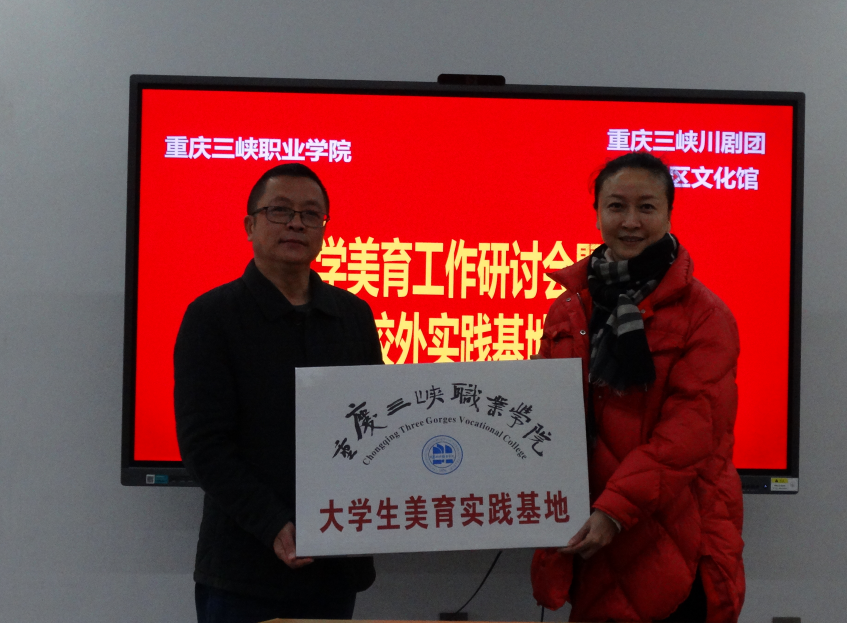 为深入贯彻习近平总书记关于学校美育工作重要指示精神和全国教育大会精神,积极落实教育部《关于切实加强新时代高等学校美育工作的意见》等文件精神,进一步提高我校师生审美和人文素养。2022年12月29日,重庆三峡川剧团团长谭继琼、万州区文化馆副馆长易良军领队来到我校开展美育工作研讨及美育实践基地授牌。