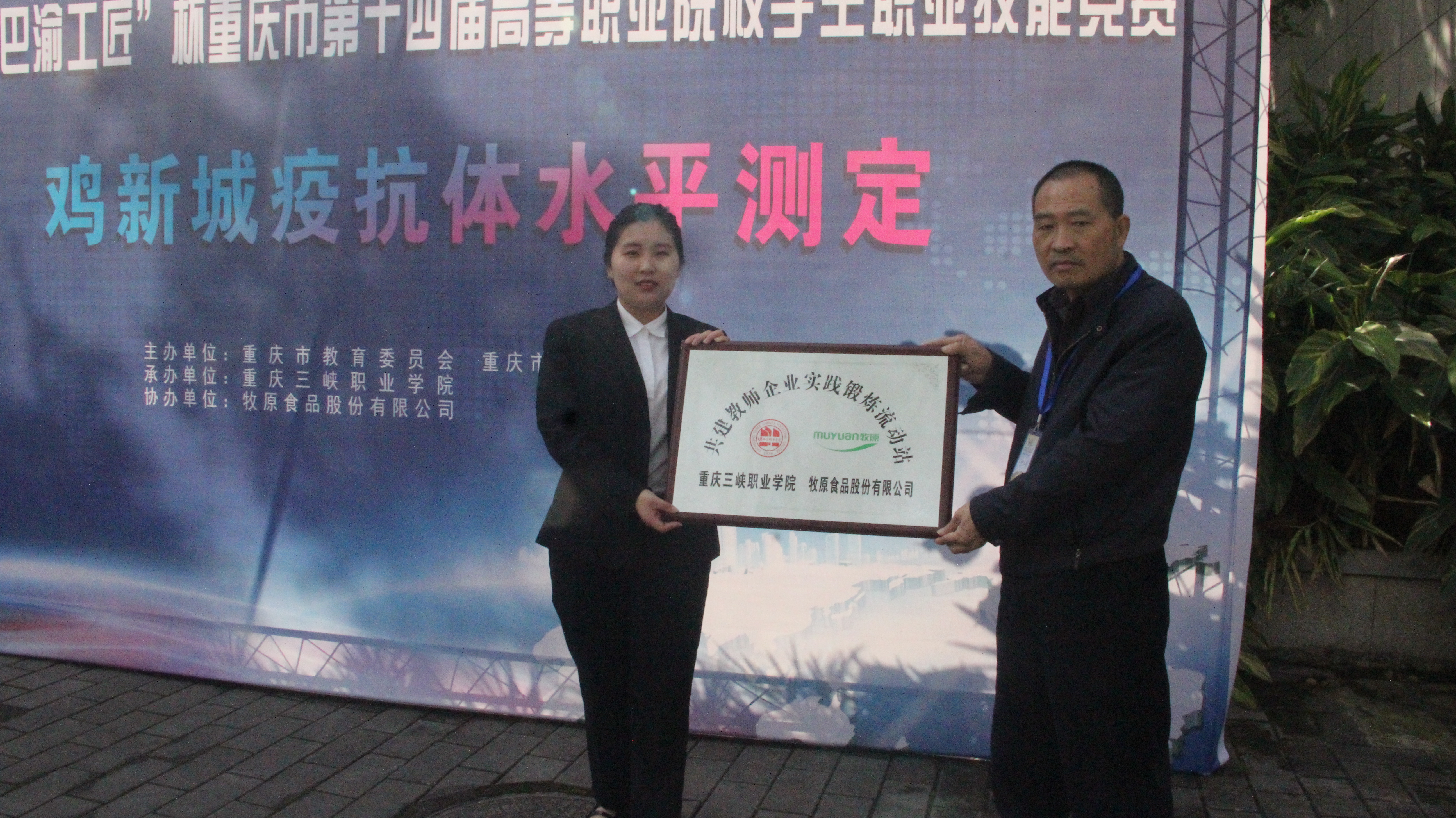 4月27日,双方在动科实训中心举行了授牌仪式,牧原食品有限公司人力资源部经理杜俊珂、张发伟,动物科技学院副院长向邦全出席了仪式,公司在我校建立了“牧原股份人才培养基地”,同时,学校在公司建立“校外实训基地”及“教师企业实践锻炼流动站”。