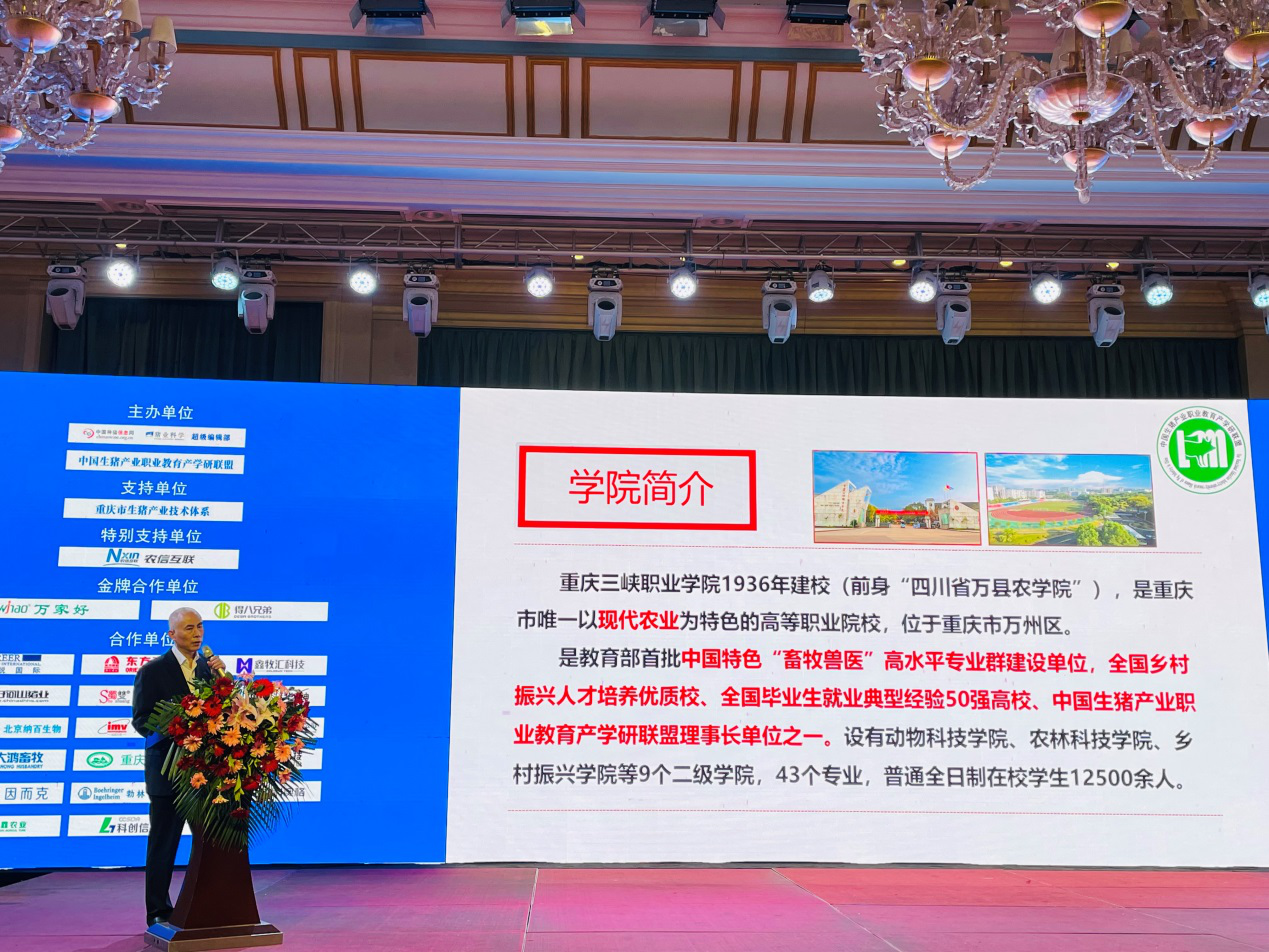 本次会议是由中国种猪信息网、《猪业科学》超级编辑部、中国生猪产业职业教育产学研联盟(澳门金年会app下载官网)主办的养猪产业行业盛会。四川农业大学、西南大学、湖南生物机电职业技术学院、南充职业技术学院、内江职业技术学院、四川水利工程职业技术学院、澳门金年会app下载官网等近20余所高校的教师,大北农集团、重庆市畜牧科学院、嘉和农牧有限公司、四川万家好科技集团有限公司、青岛得八兄弟机械有限公司、重庆市畜牧技术推广总站、大好河山猪业、巨星农牧有限公司等近百家企业、研究所约200人参加了此次大会。