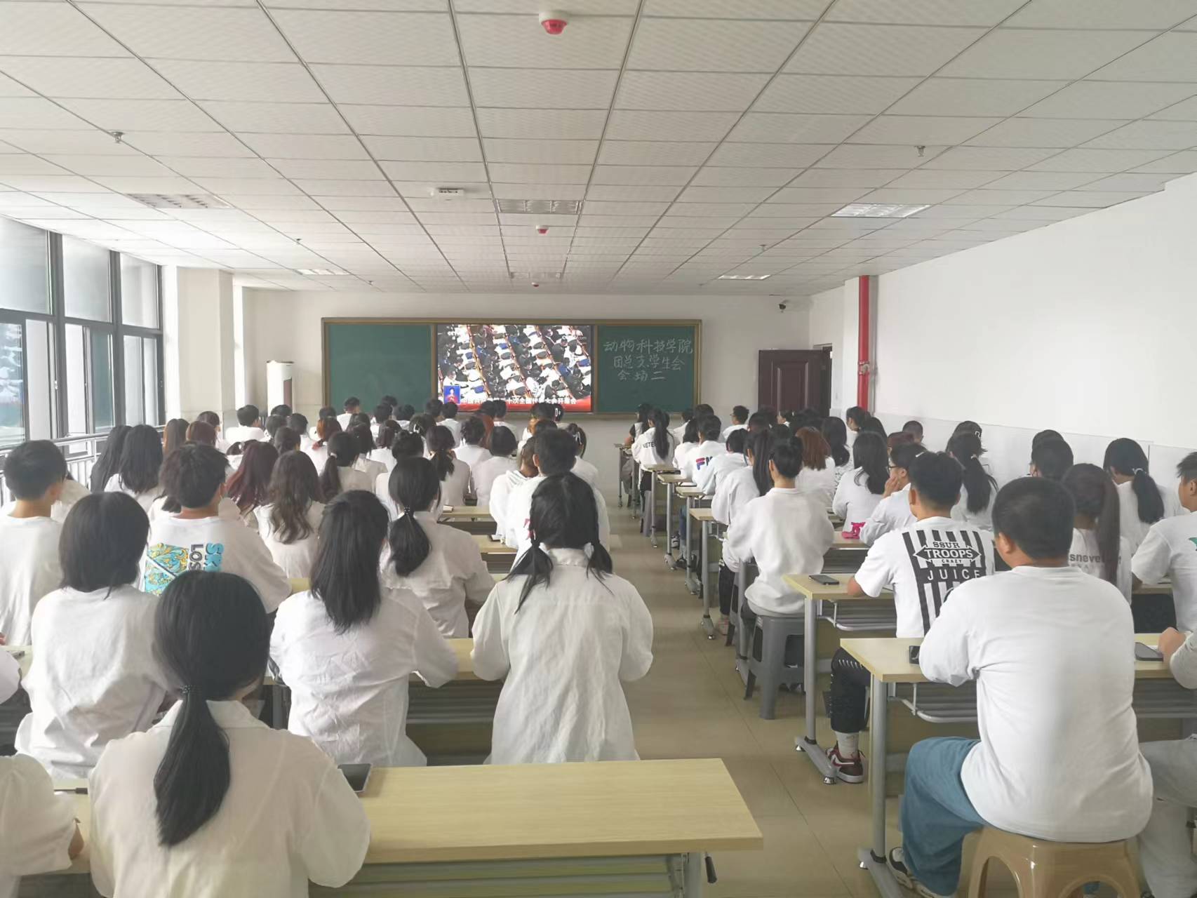 为了深入学习贯彻落实二十大重要讲话精神,动科团总支于2022年10月16日上午10点在动科楼604、606组织学生代表集中观看二十大开幕会。