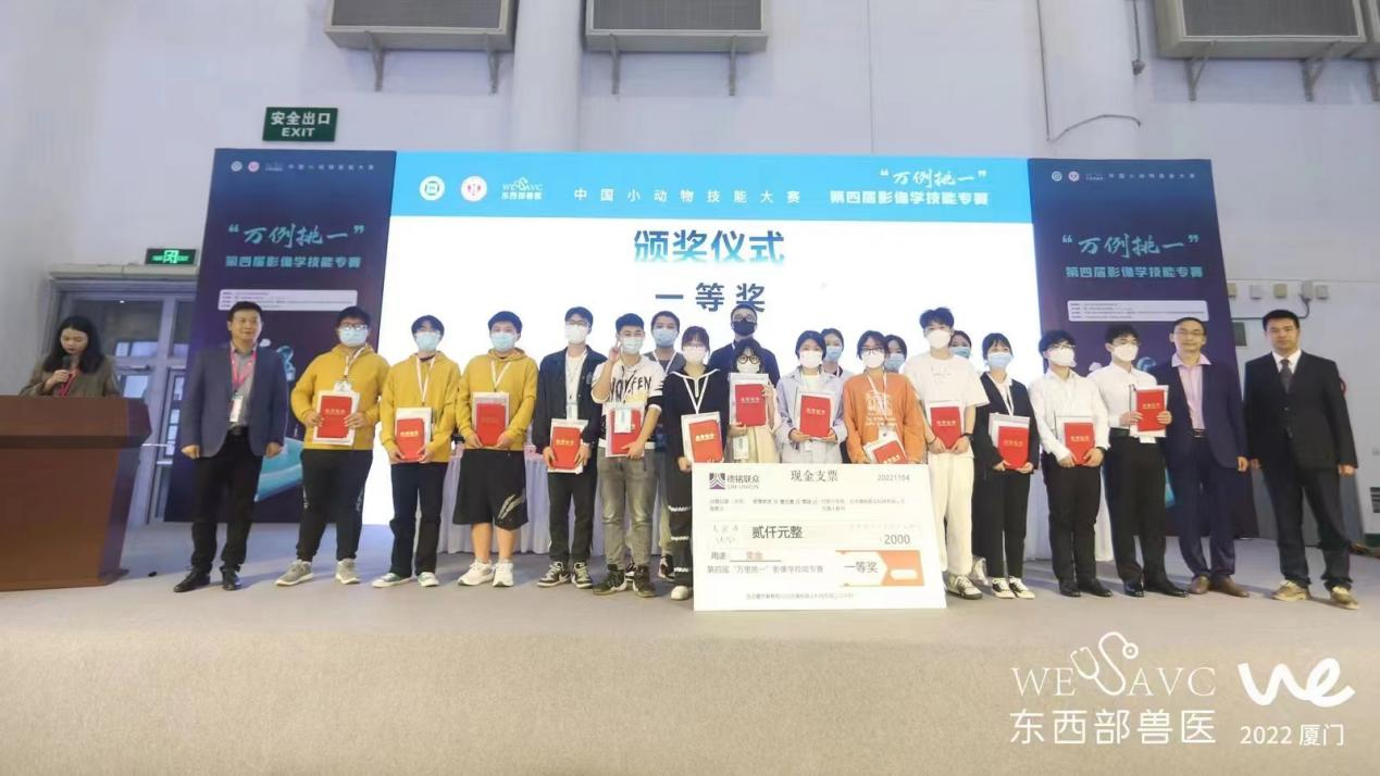 11月2-4日,由全国农业职业教育教学指导委员会指导,中国现代畜牧业职教集团、东西部兽医和北京德铭联众科技有限公司联合主办的中国小动物技能大赛第四届“万例挑一”影像学技能专赛在第十四届东西部小动物兽医师大会上举行。由我院王晓艳、贺闪闪老师指导的宠物临床诊疗技术专业的杨嘉豪、曹美怡、刘江涛同学荣获一等奖。